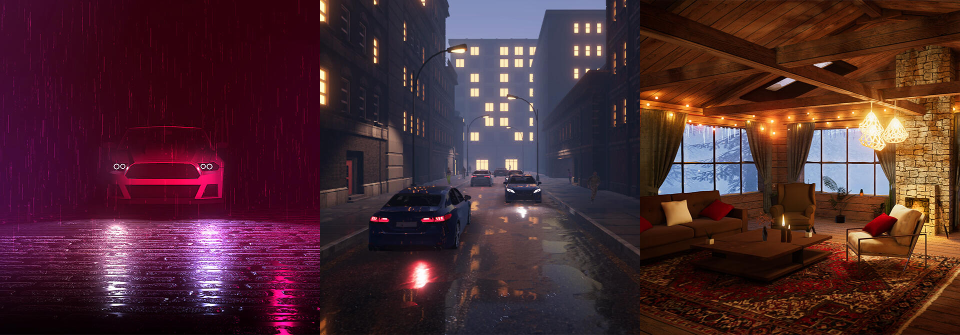This project developed a real-time procedural solution to precipitation material states and transitions which can be adopted in mainstream game engines.